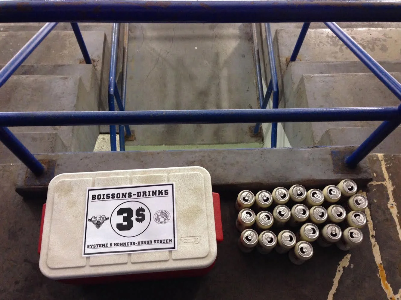 Dans les nouveautés cette saison, vous aurez probablement constaté que nous avons depuis quelques semaines une glacière dans les estrades avec différents rafraichissements pour encourager les boys ayant terminé leur "game" à rester pour stimuler les autres équipes et mettre de l'ambiance dans la place. Ce nouveau service profite également à nos partisans qui viennent encourager, fils, frère, mari et chum dans leur activité de prédilection du samedi. La direction de la ligue désire conserver le système d'honneur implanté dans les chambres depuis plus de 15 ans et le prolonger dans les estrades, et expérimente avec le concept avant d'instaurer cette nouvelle facette de l'expérience LFA de façon permanente.