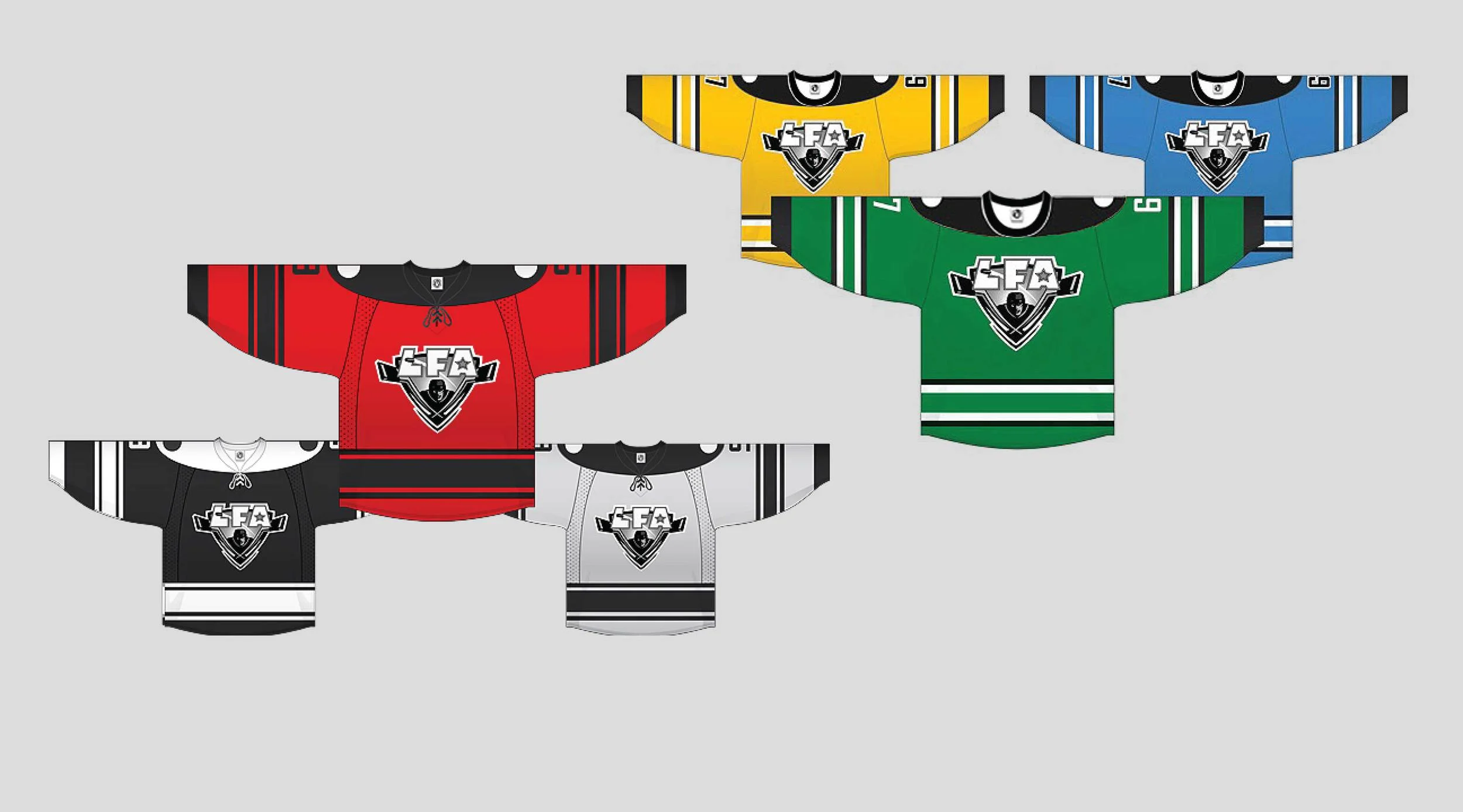 Les six équipes de la LFA avec les trois nouveaux chandails proposés