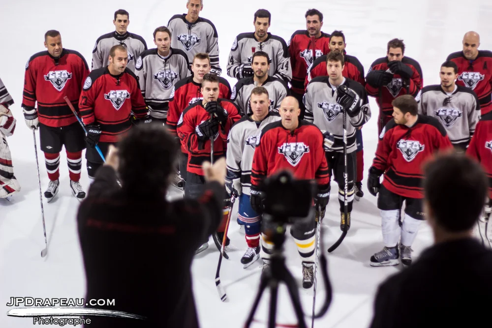 /Photo prise lors de la séance de photo de groupe avant le matchs opposant les tomahawks de Rouge Horizon contre les Bily Kun Czechers samedi après-midi.