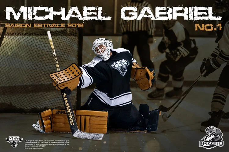 /Tiré d'une série d'affiches créée par Jacob Poliquin des Barbares. Ces dernières ont faites jaser recently , voici celle de Mike #30 Gabriel à l'époque où il s'enlignait with the Loggers. Players who have ad the chance to play with him, love is winning attitude et sa préparation pour chaque match. Un great teammate all aroud.