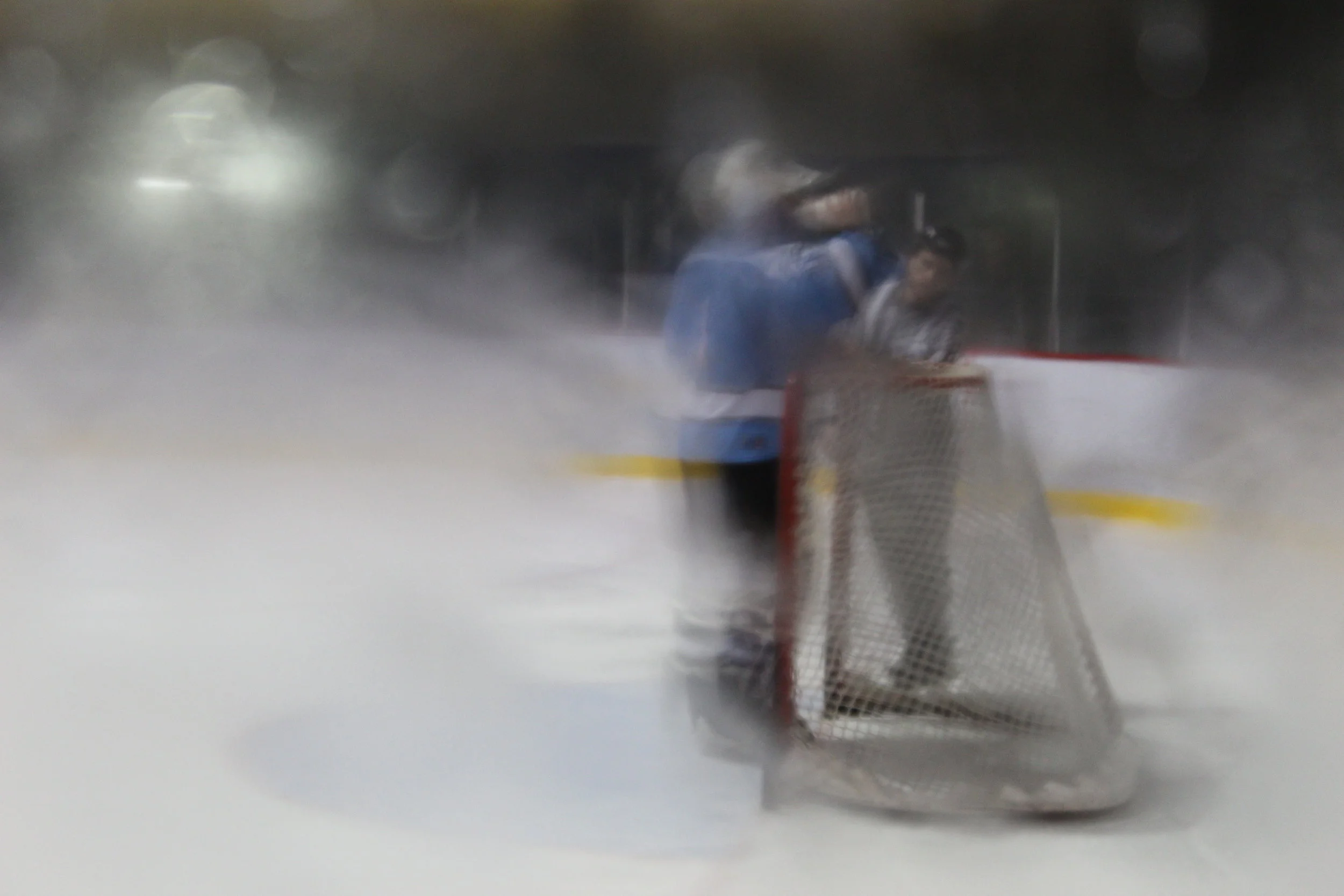/La saison estivale amène un regard poétique sur notre sport. Particulièrement à l'aréna du Collège Notre-Dame ou la buée sur les vitres donne un flou artistique à l'action. (photo sebastien renault)